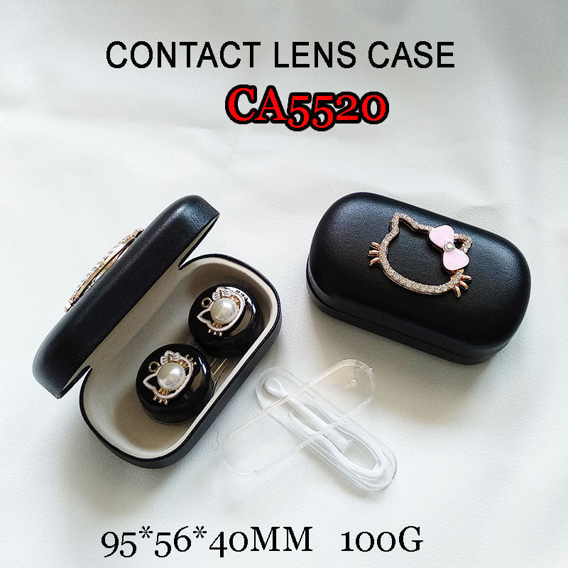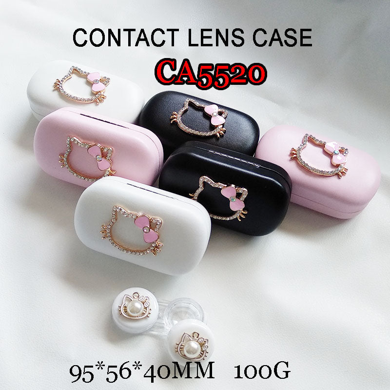 סט אלגנטי בעיצוב הלו קיטי-יהלום לאחסון עדשות מגע + ציוד לטיפול בעדשות
